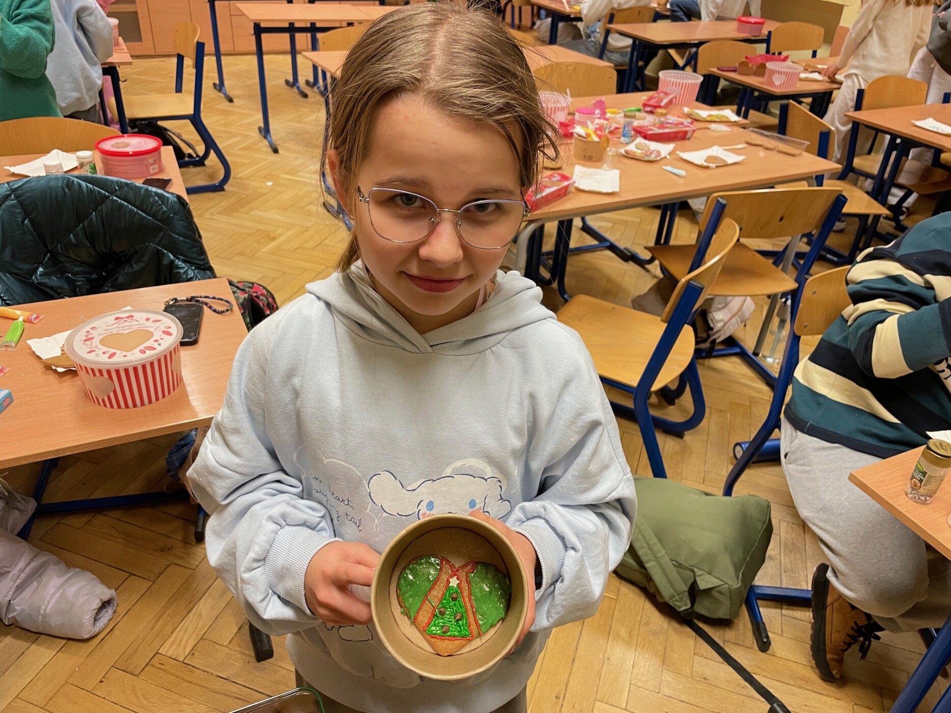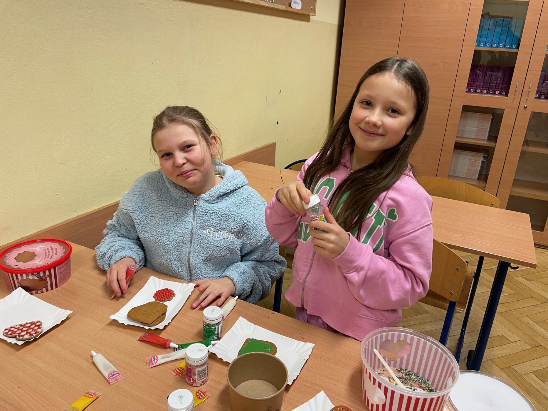 Miłym akcentem, który stał się naszą tradycją jest świąteczne dekorowanie pierniczków. Poziom słodyczy wymieszanej z cynamonem i kardamonem był tego dnia w szkole bardzo wysoki. Dziękujemy Radzie Rodziców, która pomogła w organizacji tej niespodzianki.