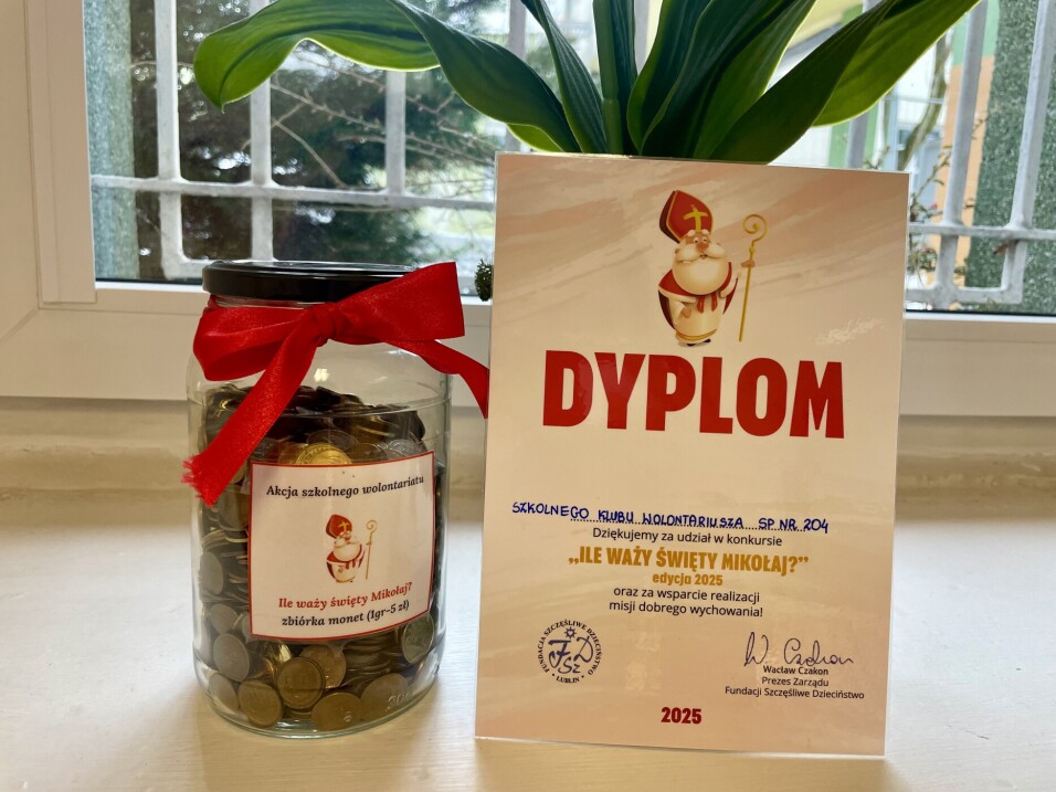 Już po raz trzeci szkolny wolontariat przyłączył się do ogólnopolskiej akcji Ile waży święty Mikołaj? To inicjatywa organizowana przez Fundację Szczęśliwe Dzieciństwo. Wspólnymi siłami zebraliśmy 22,5 kg monet- co dało kwotę 261,58 zł. Dziękujemy za każdy grosik!
