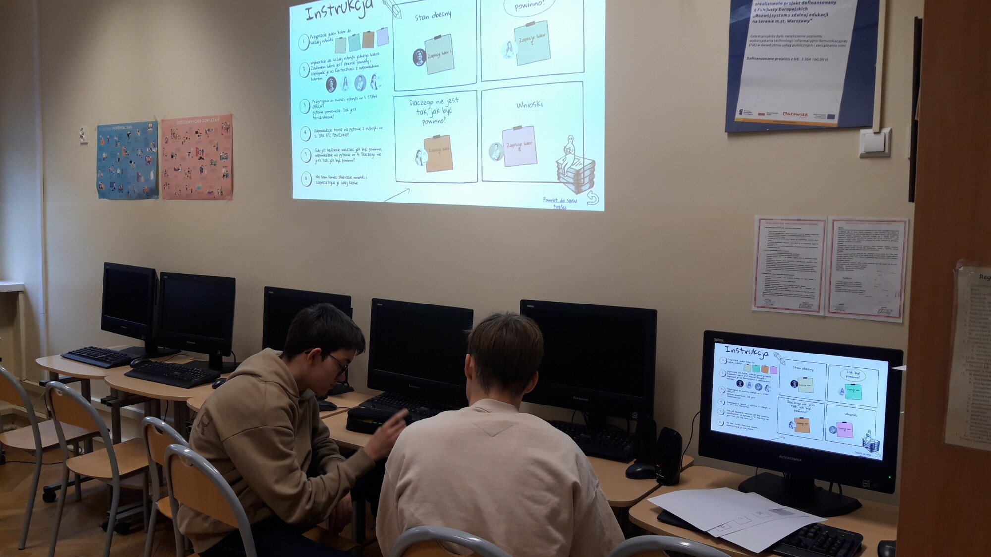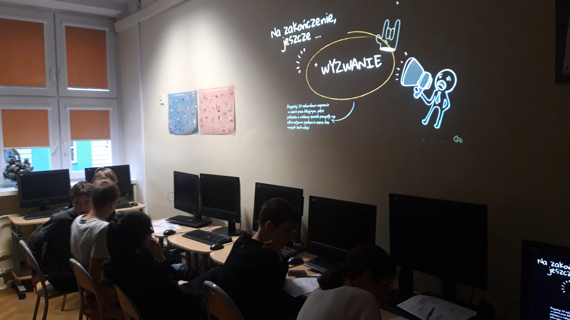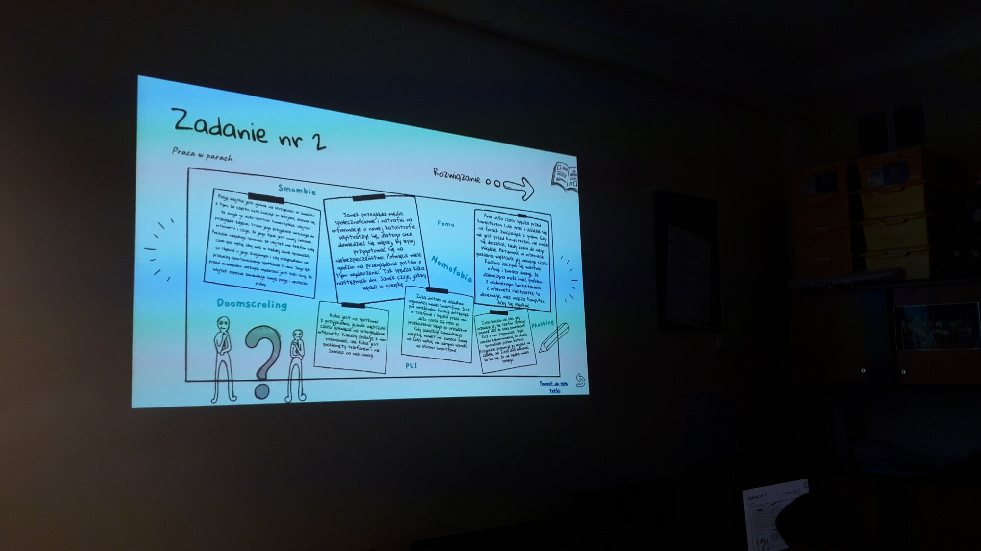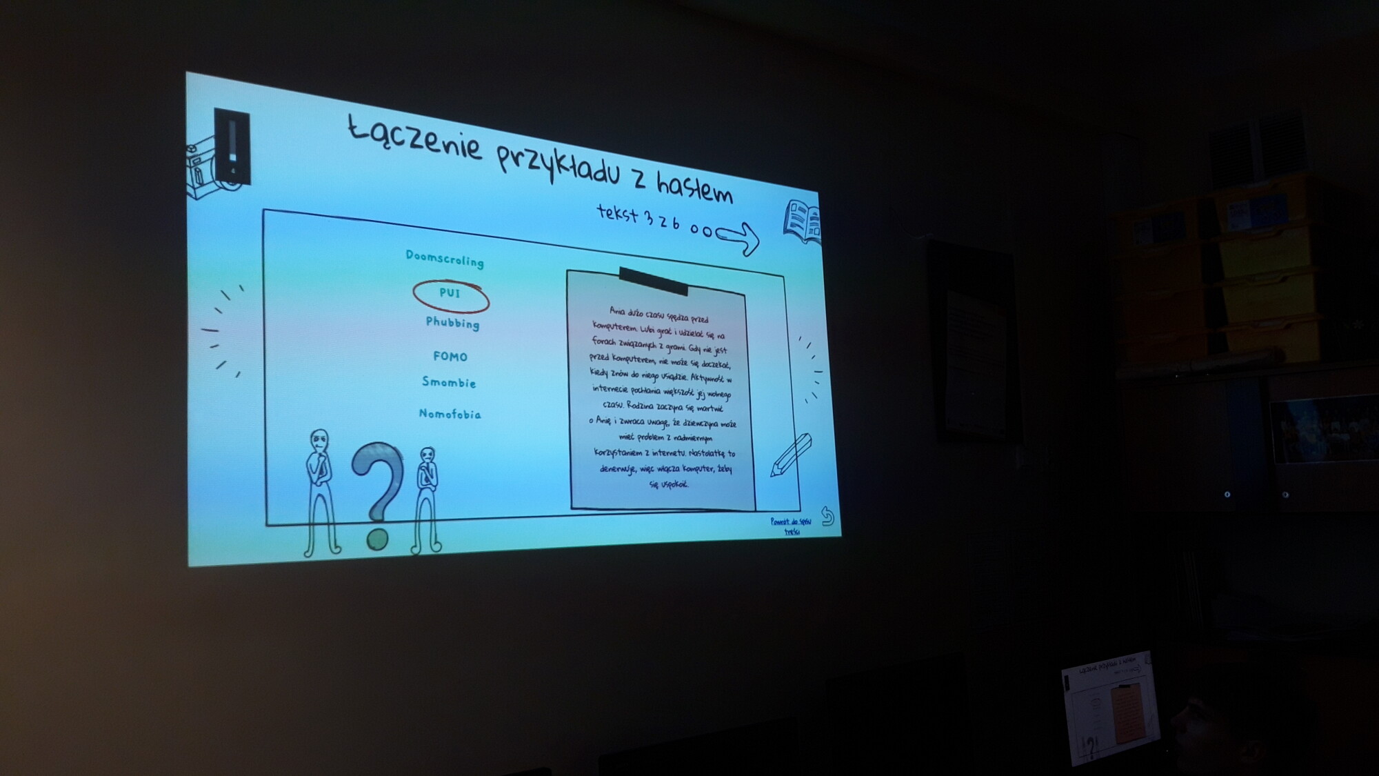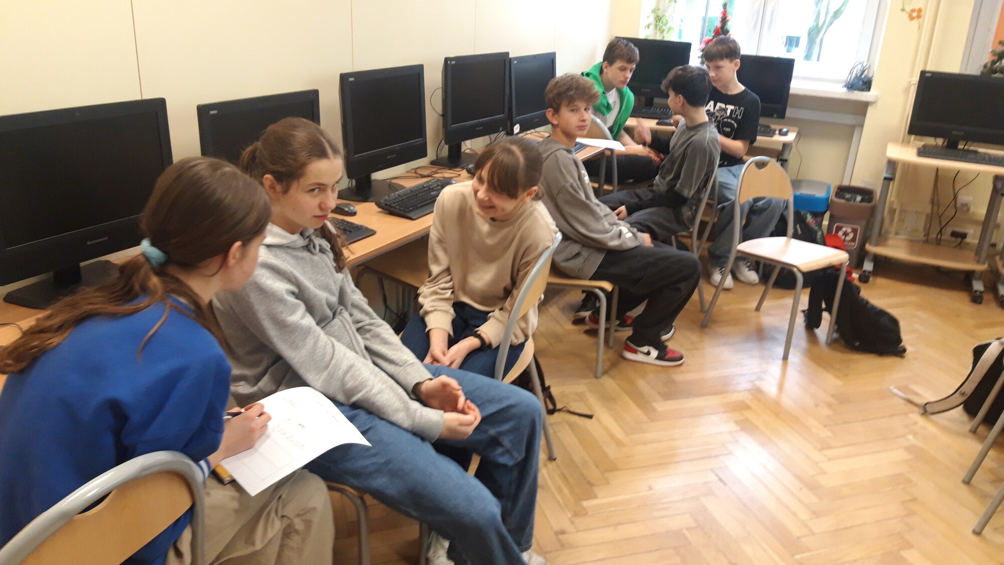 W klasach starszych na lekcjach informatyki uczniowie spędzili miło czas z czatem GPT, chillowali zarówno w realu jak i w wirtualu, przypomnieli sobie jak korzystać z sieci bez hejtowania oraz jak chronić się przed cyberprzemocą. Zapoznali się również z pojęciami tj.: FOMO, Smombie, Nomofobia, Doomscroling, PUI. Wypełniali również karty pracy dla utrwalenia wiadomości. Obejrzeli także filmiki edukacyjne związane z tematem lekcji.