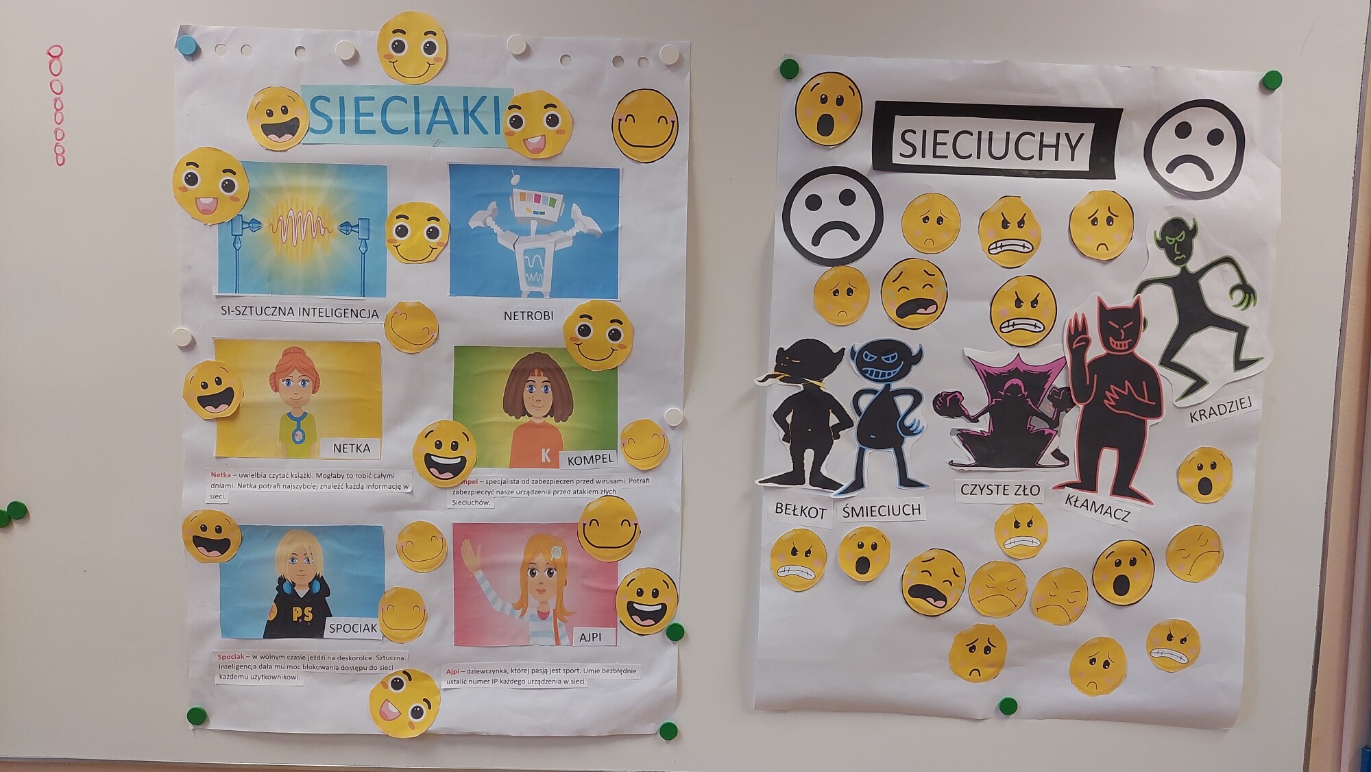 W klasach młodszych dzieci serfowały po Internecie z Sieciakami, Plikiem i Folderem oraz Sieciuchami. Wykonały plakaty oraz gazetki ścienne związane z bezpieczeństwem w sieci.